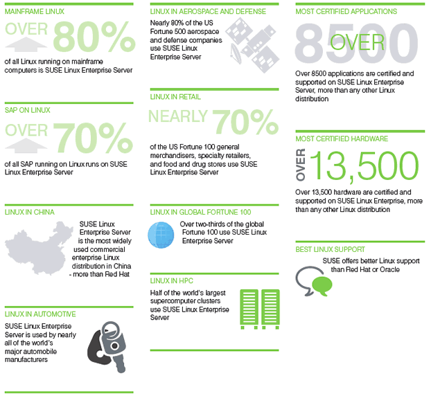 2/3 of Fortune Global 100 and many HK well known enterprises select SUSE Linux for their data centers.